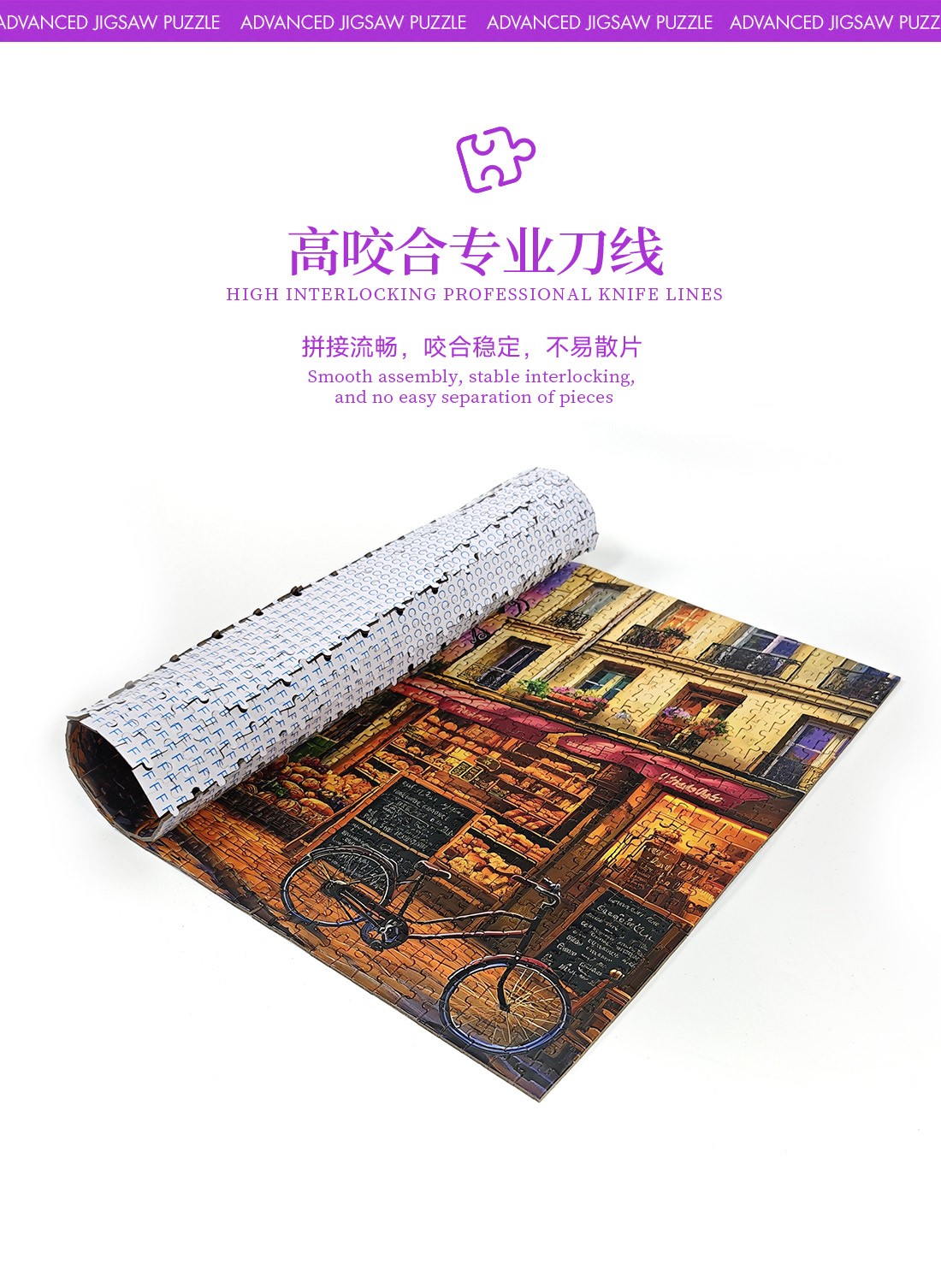 拼圖名稱:巴黎黃昏之韻 拼圖尺寸:380*260MM 拼圖片數(shù):細微灰卡1000片 加工方式:廠規(guī)、來圖定制 包裝尺寸:180*130*50mm